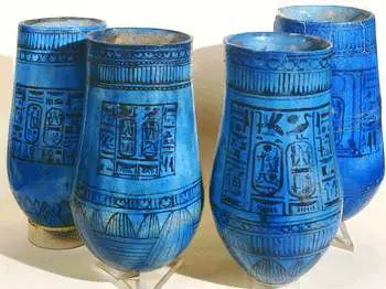Estos cuatro vasos de color azul brillante, de cuarzo y cerámica vidriada, durante mucho tiempo, fueron uno de los tesoros mejor guardados del Museo del Louvre, desde que los adquirió en 1905. Algunos historiadores, en aquel momento, estaban convencidos de que eran los vasos cánopos de Ramsés II. Incluso se aseguró que uno de ellos, contenía el corazón del faraón. Algunos periodistas de la época, incluso, criticaron esta adquisición del Museo francés, por considerarla algo macabra.