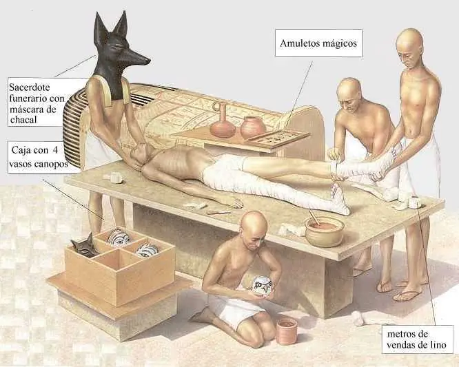 Los embalsamadores se encargaban del complejo proceso de momificación estirpando el cerebro del cadáver, -desconocían su función cognitiva-, sin embargo, solían dejar intacto el corazón… extraían víceras y órganos internos que, una vez embalsamados, colocaban en los cuatro vasos canopos, para mantener a salvo la imagen unitaria del difunto.
