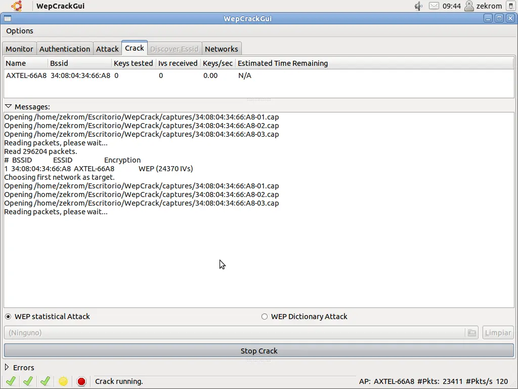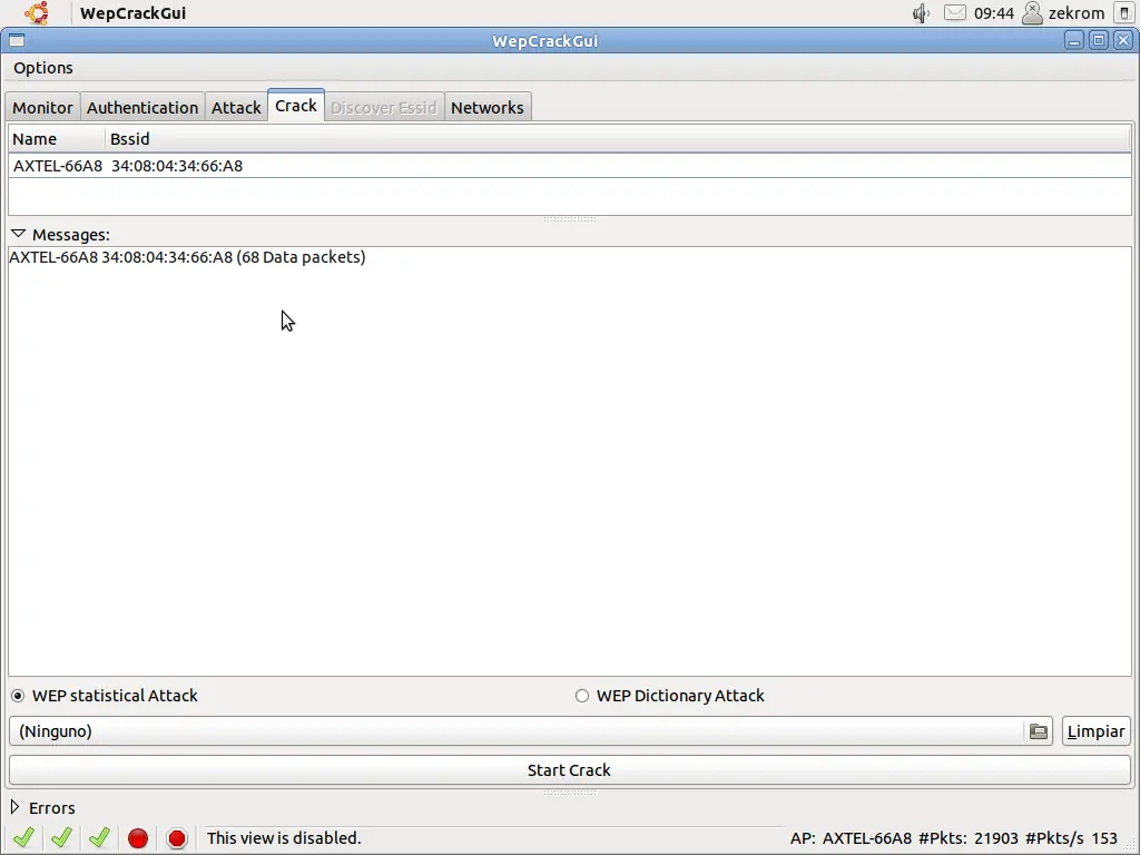 Cuando esto pase entraremos a la ventana crack y daremos click en start crack.En este monento comenzara a desincriptar la clave de la red, puede tardar varios minutos dependiendo del uso de la red.