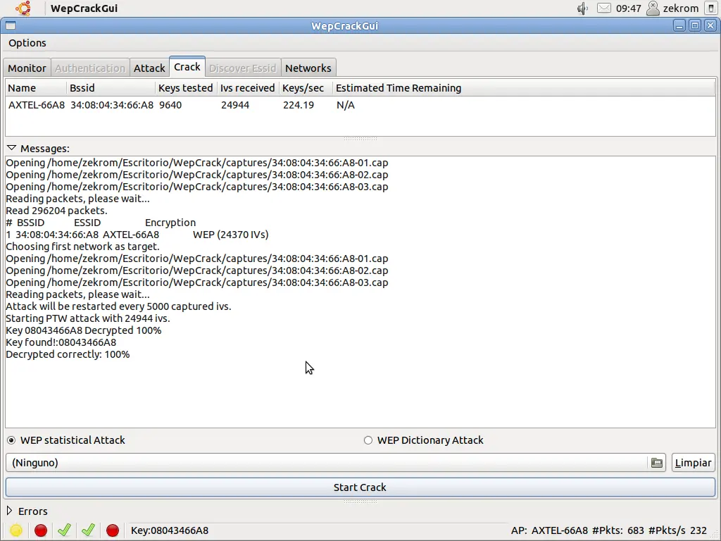 Finalmente dira: Key found! y la clave que desincripto, esta clave es la clave de la red que crackeamos.