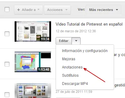 2. Añadir anotaciones a nuestros videos directamente desde YouTube
