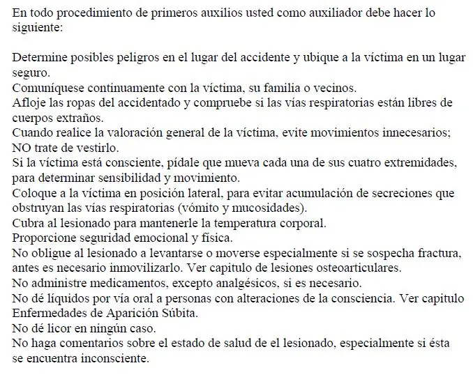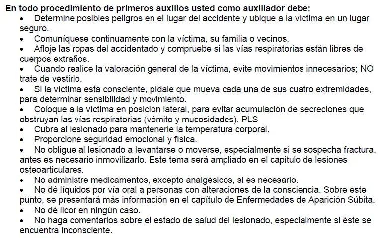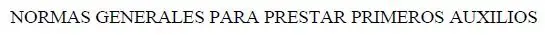 NORMAS GENERALES PARA PRESTAR PRIMEROS AUXILIOS