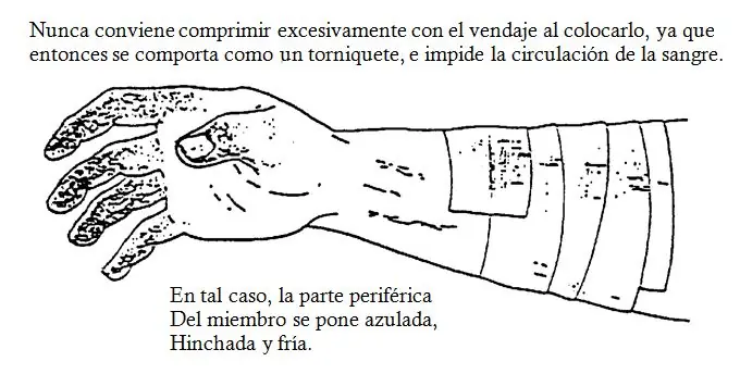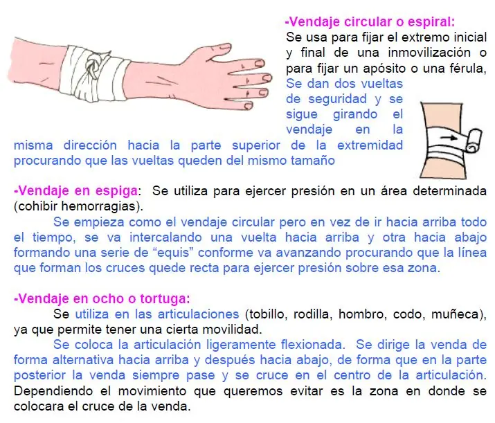 Es indispensable que haya vendas en rollo y triangulares. Se recomienda