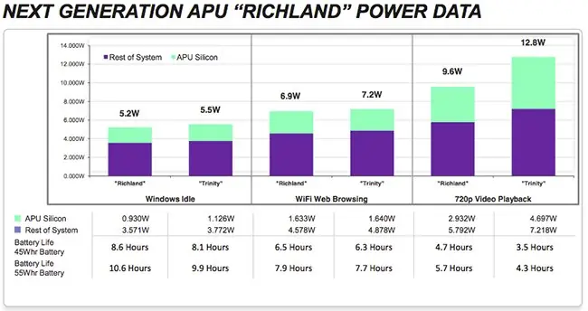 En la presentación oficial, AMD incide varias veces sobre la significativa mejora en temperatura y consumo energético de Richland. Es significativa en términos relativos, aunque no debería afectar en gran medida al consumo del conjunto.