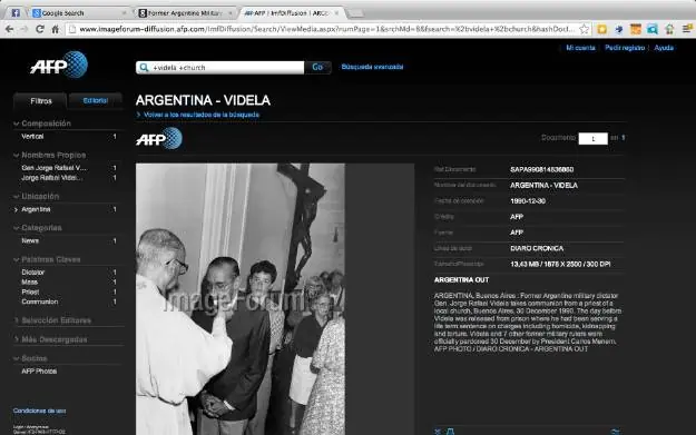 El texto de los datos de la captura, cargados por la agencia AFP, dice: "El ex dictador militar argentino Jorge Rafael Videla toma la comunión el 30 de diciembre de 1990 en la Buenos Aires. Videla estaba cumpliendo una condena de por vida por asesinato, secuestro y tortura, fue perdonado por el presidente Carlos Menem y fue liberado el 30 de diciembre de 1990".