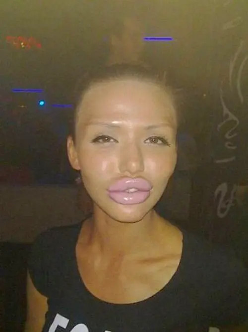 No entiendo que pasa por la cabeza de una chica guapa como la de la de estas fotos, para someterse a cirugía y acabar pareciendo el pato Donald. Dicen que lo importante es estar bien con uno mismo, pero supongo que más que eso lo que buscaba la chica era parecerse a Angelina Jolie, el problema debe ser que al cirujano se le fue de las manos. WTF.