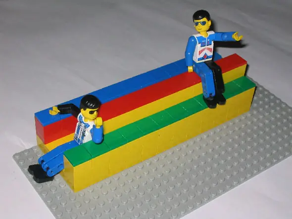 Basicamente, arman una habitacion con forma de trapezoide, y cuando se mira hacia adentro, el cerebro interpreta que las paredes ,el piso y el techo estan paralelos entre si. Algo asi como la ilusion en la imagen, donde las barras son paralelas, pero el cerebro interpreta que estan perpendiculares