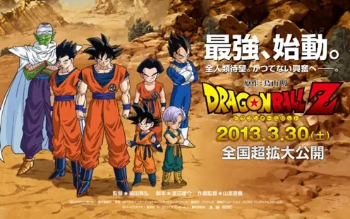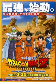Arte se Shenron en la película.Esta película fue anunciada por primera vez en julio de 2012, en la edición número 33 de Weekly Shonen Jump. A principios de julio, el sitio web oficial de la revista ya había abierto una "D" de la página que fastidia con una cuenta atrás para una "sorpresa" el sábado, 14 de julio, fecha de lanzamiento de la edición 33a. El 14 de julio, el sitio cuenta atrás y los sitios web oficiales fueron cambiados para mostrar Shenron, desaparecer y revelar alguna información de menor importancia de la próxima película, incluyendo la fecha de estreno, la información personal y las empresas implicadas en la producción (Fox International Producciones Japón, Shueisha , Fuji TV, Toei Animation, Bandai, Bandai Namco Games, y Bird Studio). El lema de la película es The Strongest, de inicio (最强,始动, Saikyō, Shido ), seguido de "esperada desde hace mucho tiempo por toda la humanidad. Hacia un entusiasmo sin precedentes". El sitio web oficial también anunció un comentario por Akira Toriyama sobre la película impresa en Weekly Shonen Jump #33. A Dragon Ball de la serie señala que el creador de la adaptación marcará la primera vez que ha sido tan profundamente involucrados en la producción de un anime, en este caso tan pronto como las etapas de escritura de guiones. Toriyama también dice que la película va a mantener la atmósfera de la original, mientras que la adición de pequeñas cantidades de un "toque moderno".