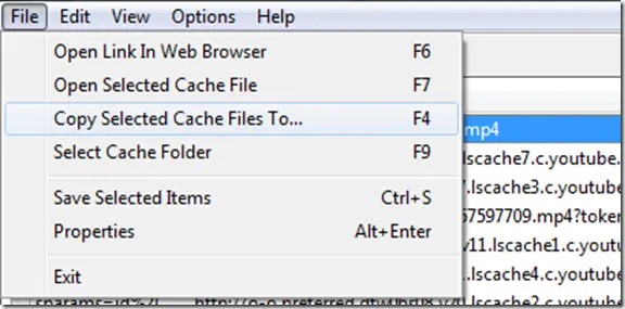 5. Presiona “f4” o da click en “file” después en “copy select cache files to” y pon la ruta en donde quieres guardar el archivo (en tu memoria usb, en tu computadora o en donde quieras)