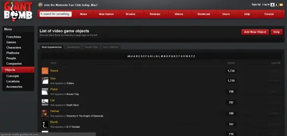 GiantBomb es un sitio creador por ex editores de GameSpot, que se caracteriza no sólo por ser un portal de novedades gamer como cualquiera de los mencionados al principio de la nota, sino también por tener una wiki interna en donde podemos consultar practicamente todo lo relacionado al mundo de los videojuegos. ¿Querés saber qué juegos usan el plasma como arma? ¿te interesa conocer qué hay detrás del concepto “instant kill”? ¿querés saber que juegos en la historia usan la jungla como escenario? Todo esto y más lo tenes en GiantBomb.