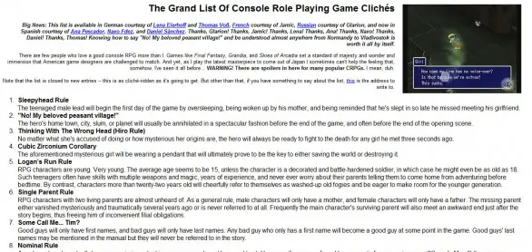 The Grand List of Console Role Playing Games Clichés