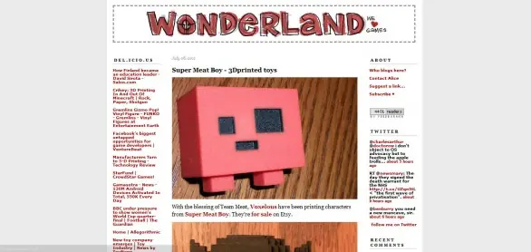 Wonderland es un blog que nos introduce a los gamecrafts. Estos son diferentes objetos hechos por usuarios que hacen referencia a los videojuegos. Por ejemplo, nos podemos encontrar con peluches hechos a mano, posters, Legos, etc. Hay obras dignas de coleccionistas.