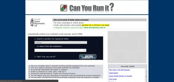 Y para terminar la trilogía de armado de PC, este sitio te escanea tu computadora y te dice si podés correr un juego que elijas de la lista, bajo qué condiciones, y qué te faltaría para correrlo mejor. Te pide acceso a tu máquina, pero quedate tranquilo que es un sitio confiable.