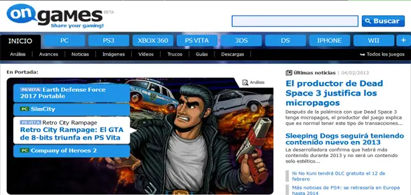 Revista de videojuegos online que también habla sobre lo ultimo de la actualidad de videojuegos con una multimedia de imágenes y videos considerable.