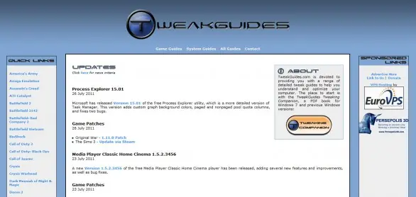 Tweak Guides es un sitio que si bien no es exclusivamente gamer, sirve para todos los gamers. Acá podés encontrar guías de cómo meter mano en tus juegos de PC para optimizar diferentes opciones que no se encuentran dentro del menú ingame. También ofrece la opción de hacer tweaks en otras cosas que no sean juegos, por lo que alguno va a encontrarle otra utilidad aparte.