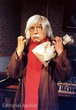 En este papel, él es un anciano de cabello y bigote canosos, que siempre viste una chaqueta larga marrón oscuro y pantalones del mismo color, lleva además una bufanda roja la cual en algunas temporadas le llegaba hasta la rodilla.