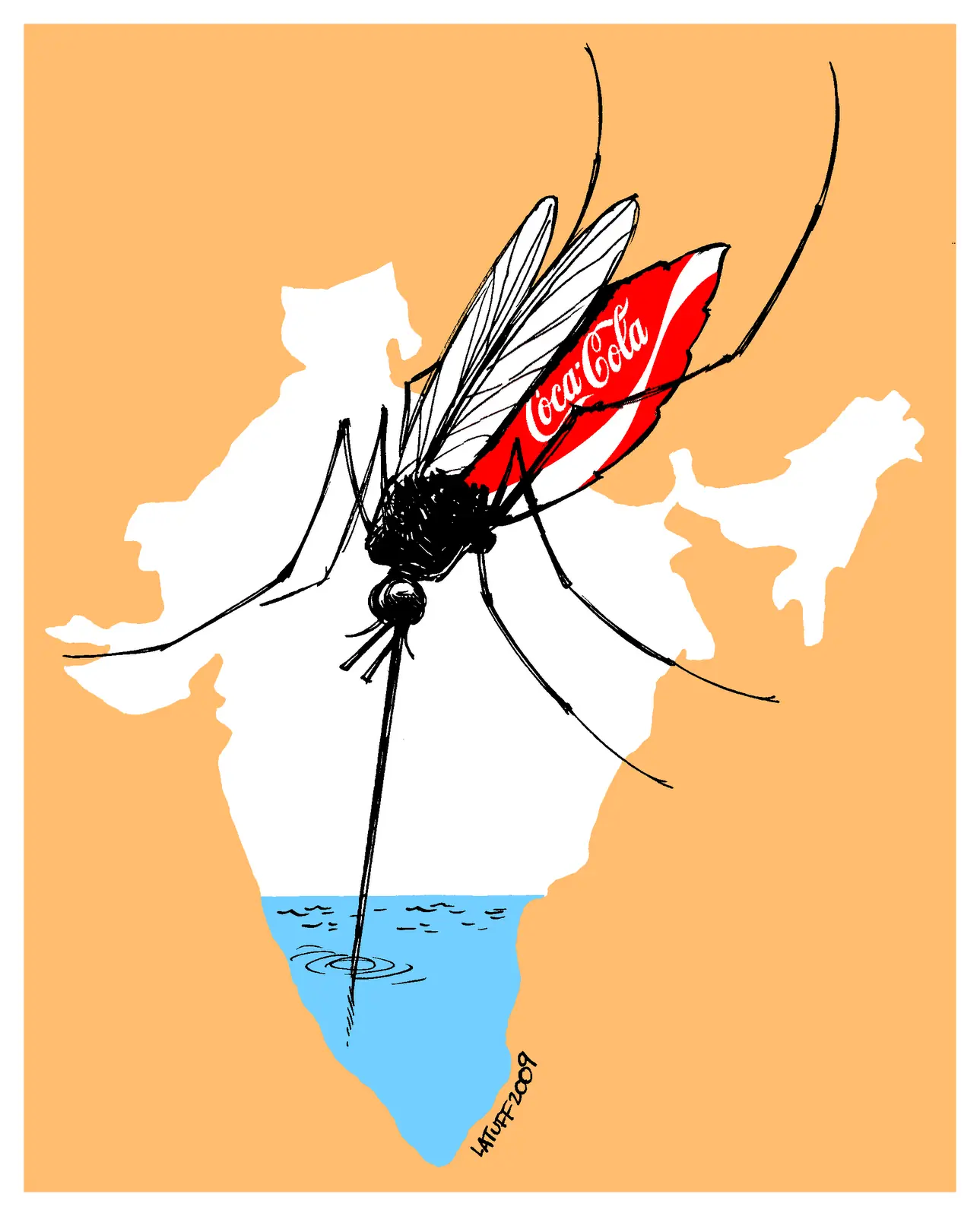 En una zona de la India, el estado de Kerala, la Coca Cola ha sido acusada de repartir desechos tóxicos a los campesinos diciendo que son fertilizantes. Greenpeace hace más de un año está haciendo una campaña contra esta central de la Coca Cola en Plachimada, por estar contaminando el agua de la aldea y afectando a la población.
