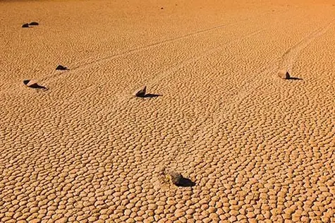 Un misterioso fenómeno en el desierto de California. ¿Rocas que caminan y se mueven solas? Parece cosa de locos, pero es cierto. Se trata de un fenómeno insólito que acontece en el Valle de la Muerte, en un área conocida como Racetrack Playa. Se descubrió en 1948, y la ciencia no ha encontrado aún una explicación, aunque la hipótesis más aceptada es que el agua que a veces se filtra del suelo forma placas de hielo por el frío nocturno, y las piedras se deslizan sobre estas planchas empujadas por el viento.