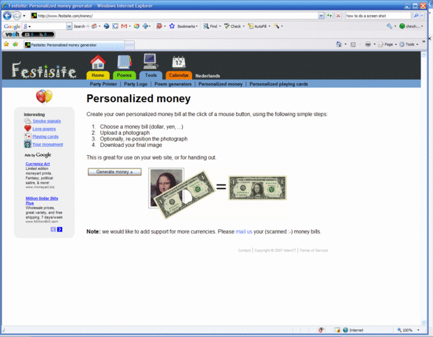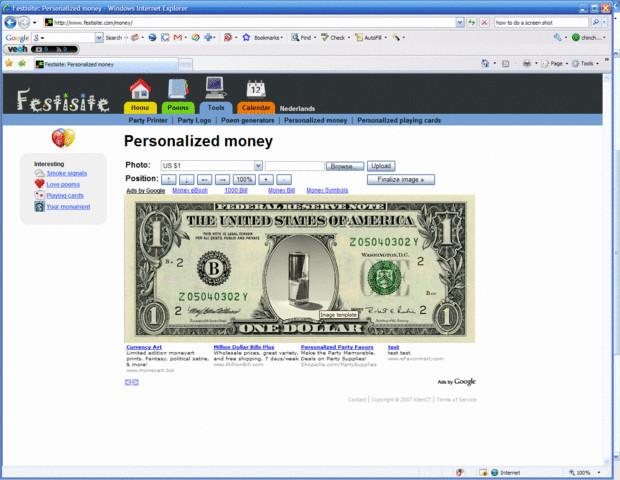 ¿Alguna vez ha querido poner su cara en medio de un billete de un dólar. O simplemente dar como un regalo divertido para tu amigo.. Ahora usted puede hacer con unos pocos clicks de ratón!