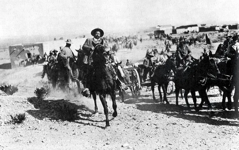 José Doroteo Arango Arámbula, más conocido por su alias Francisco Villa o el hipocorístico de éste, Pancho Villa. Fue uno de los jefes de la revolución mexicana, cuya actuación militar fue decisiva para la derrota del régimen del entonces presidente Victoriano Huerta.5 Originario del estado de Durango (se desconoce si era de Río Grande o de San Juan del Río ), nació el 5 de junio de 18781 y murió asesinado en una emboscada en Hidalgo del Parral (Chihuahua) el 20 de julio de 1923.2 Durante la revolución fue conocido como «El Centauro del Norte».