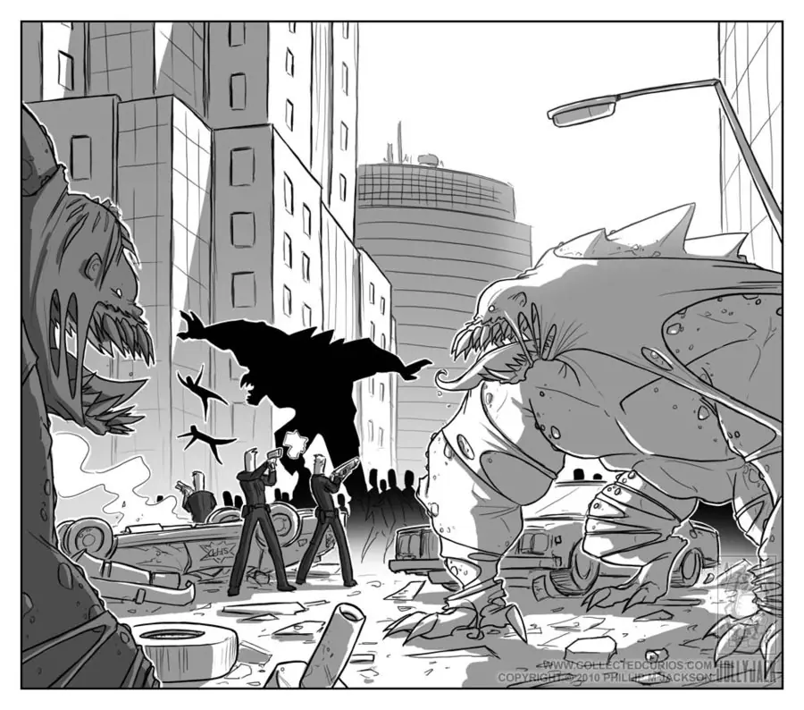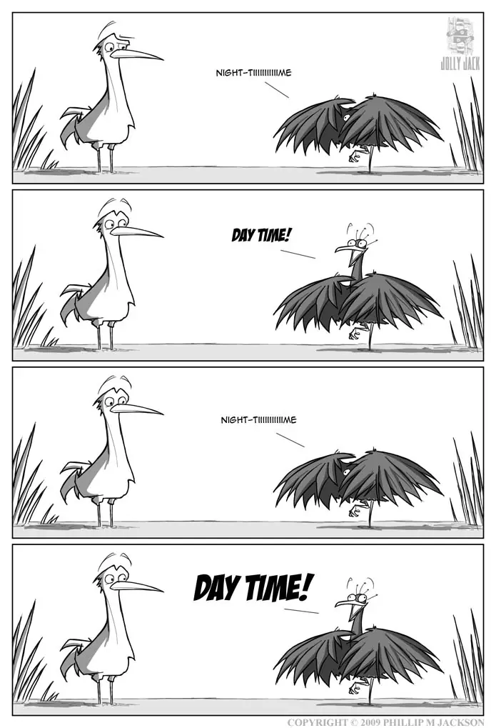 Acá van otras imágenes humorísticas y artísticas, para que también vean lo bien que maneja las sombras y las luces con su estilo "blanco y negro";