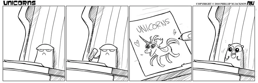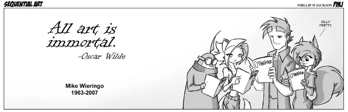 A continuación les dejo unas pocas tiras de una tira cómica que él creó llamada "Sequential Art" que cuenta la vida y convivencia de tres amigos geek (cuasi nerds) y las pequeñas peripecias de sus vidas de un modo muy hilarante.