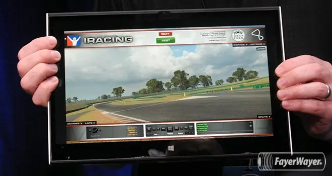 Dos ejecutivos hacían demostraciones del equipo, nos decían que tenía una duración de hasta 13 horas mientras se mantuviera conectada a la base, que era bastante ligera y fácil de sostener con apenas unos cuantos dedos y que el rendimiento era envidiable. De hecho había un demo de un juego de carreras, aunque todos sabemos que se necesita bastante poder para correr los juegos de PC de hoy en día.