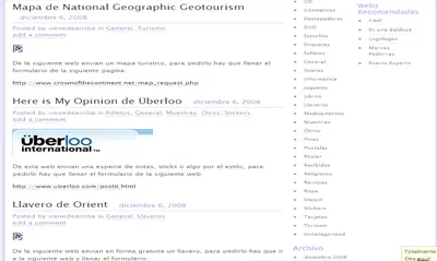 recopila links hacia sitios que ofrecen muestras gratuitas de todo tipo de productos. La mayoría desaprovechamos estas ofertas por desconocerlas o no tener tiempo de buscarlas. Lo bueno de freebsarg es que, además de que mi novia se pone más linda con los productos de belleza que obtuvimos, yo conseguí unos cuantos productos de informática y software, libros, antivirus, CDs de instalación de software y actualizaciones, etc.