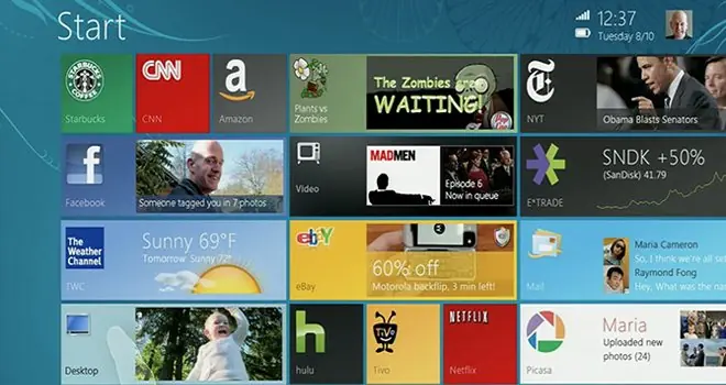 Sí, porque desde hace mucho tiempo que se piensa en Modern UI (ex-Metro), y se sabía de antemano que había que adaptar Windows para un mejor funcionamiento en tabletas y dispositivos con pantallas táctiles. Así, vemos que los elementos fundamentales de Windows 8 en 2010 ya existían: la nueva pantalla de inicio con cuadrículas y la barra lateral derecha, la cual en ese entonces era bastante distinta a lo visto hoy en día.