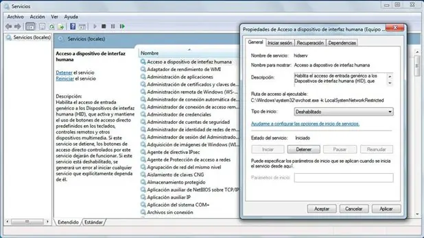 En la casilla Tipo de inicio también es posible deshabilitarlo para que no vuelva a arrancar cuando volvamos a encender el ordenador la próxima vez. Por lo general, los que podemos desactivar de forma segura y sin riesgos son los siguientes: Acceso a dispositivos de interfaz humana, Control parental (si no lo precisamos, claro está) y Servicio de entrada de Tablet PC (en caso de no disponer de pantalla táctil).