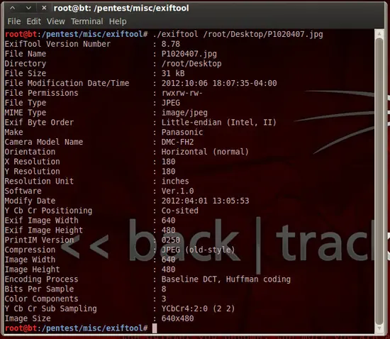 El análisis señala que la imagen se tomó con una cámara: Panasonic, modelo: DMC-FH2. El primero de abril del 2012, a las 13:05:53. Cuenta con un procesador Intel II y usa el formato Little-endian. Si la procedencia de está imagen estaría en discusión, con estos datos se podría encontrar una respuesta. Y si la cámara digital tuviera GPS (como las últimas que vienen saliendo) se podría saber su ubicación.