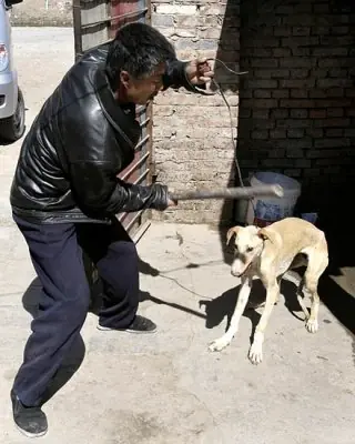 En ese momento, un hombre abrió la puerta... ¡y comenzó a golpear al perro!