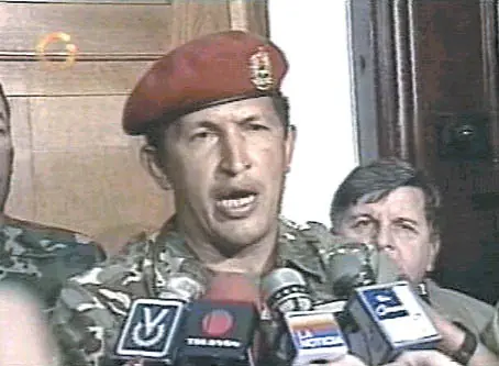 El 11 de 2002 abril el alto mando de las Fuerzas Armadas venezolana derroca a Chávez tras un enfrentamiento en las inmediaciones del Palacio presidencial de Miraflores que provocó 19 muertos.