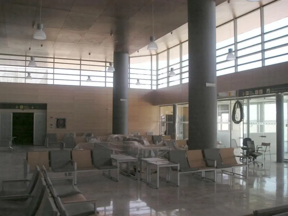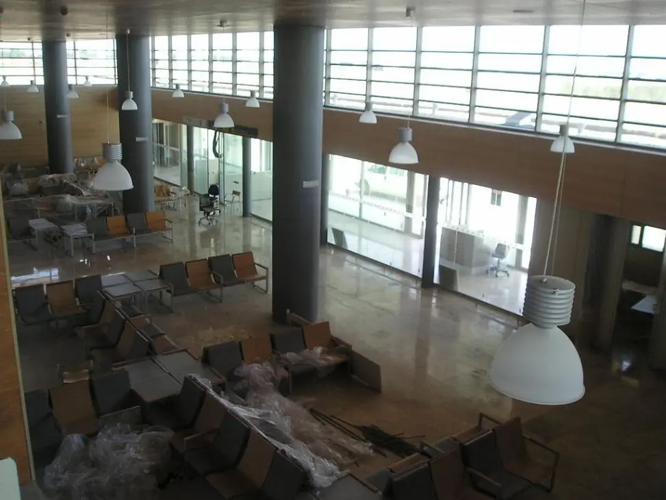 Desde el aire, el edificio tiene un aspecto fantasmagórico. La hora de llegada, cerca de la medianoche, ayuda. Ya en tierra todo parece en cámara lenta. Nada que ver con el ritmo que tuvo cuando la inauguró el ex ministro Jesús Caldera en 2005, para la Cumbre Iberoamericana. Costó siete millones de euros.