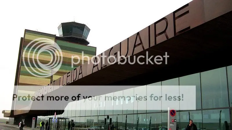 Una carretera angosta lleva a la flamante infraestructura. Llegamos al singular aeropuerto de Alguaire, a 15 km de Lleida, mandado construir por el Govern tripartito de Montilla y sus socios por 104 millones de euros. El primer aeropuerto gestionado íntegramente por la Generalitat es hoy, con sólo dos rutas, el más reciente aeropuerto fantasma.