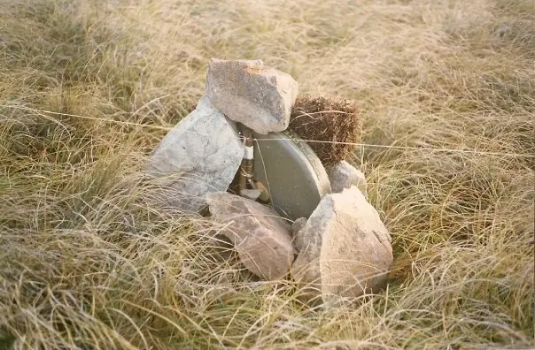 Foto: Una mina antipersonal argentina hábilmente ocultada bajo la turba malvinera.