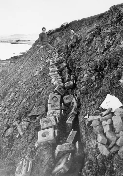 Una de las excabaciones mas impresionantes, las posiciones defensivas argentinas que daban a la costa estaban fortificadas gracias a la utilizacion de minas antitanque que darian un estallido en cadena, esto podria haber destruido cualquier desembarco del enemigo desde ese lugar..