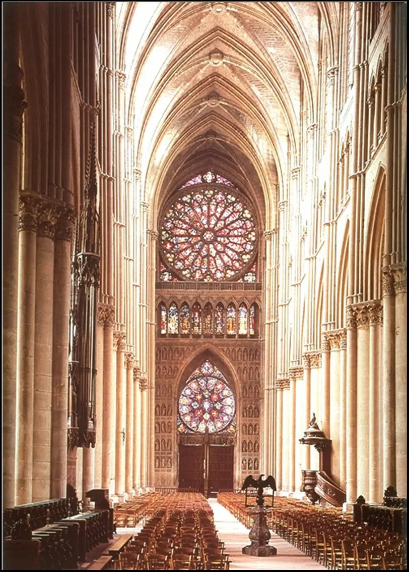 El arquitecto gótico organiza una estructura que le permite, mediante una sabia utilización de la técnica, emplear la luz, luz transfigurada, que desmaterializa los elementos del edificio, consiguiendo sensaciones de elevación e ingravidez.