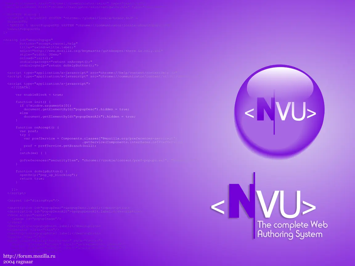 NVU es un editor visual de páginas web, esto es, permite crear páginas web sin tener que escribir código. La maquetación y el contenido son visibles desde el primer momento como si estuvieras viendo la página en tu navegador. En este sentido, es similar a otros programas como Dreamweaver o Composer.