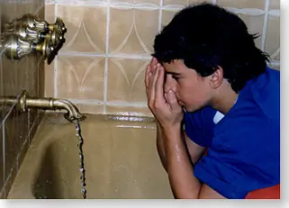 Nos levantamos y nos lavamos la cara