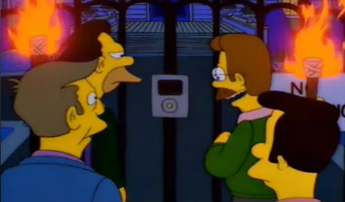 Cuando regresa Marge y se entera, comienza una cruzada contra ese lugar de perdición, que por cierto es visitado por todos los hombres de Springfield, para cerrarlo.