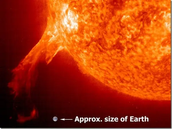 - Erupción solar: La primera etapa, que puede romper las comunicaciones. Tarda 8 min. en llegar. Además, hace que la atmósfera aumente su tamaño hasta las órbitas de los satélites, altere sus orbitas y haga que estos caigan a tierra.