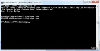 Lo primero que haremos es abrir el cmd.exe como Administrador y situarnos en la carpeta donde hemos extraído el WCE (si les cuesta mucho, busquen en Internet como navegar en la consola de Windows)