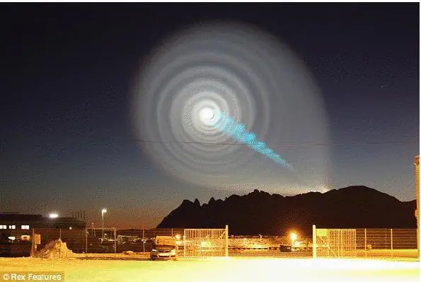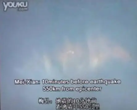 Foto de la radiofrecuencia en el cielo de Sichuan China el 12 de mayo de 2008, 10 minutos antes del terremoto. Cada color tiene una longitud de onda diferente y es por eso que la radiofrecuencia del HAARP produce colores en el cielo.