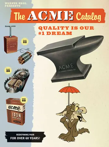 ¿Quién no ha oído hablar de ella? Posiblemente, como conocimiento de marca, ACME podría situarse a la misma altura que grandes marcas como Coca-Cola o Nike. Pero con la pequeña diferencia de que los productos de la marca ACME, los genuinos, no pueden adquirirse en la vida real, solamente en el mundo de los dibujos animados.