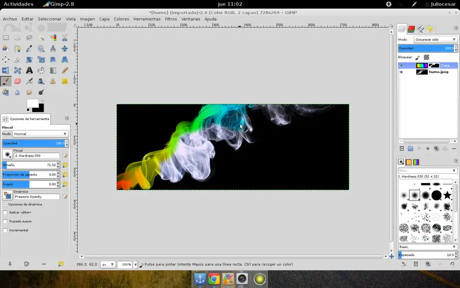les vine a traer un tutorial muy sencillo de como hacer arcoiris de humo y este seria el resultado: