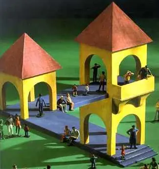 Este camino es aparentemente plano, pero parece que lleva al primer piso, ¿cómo es posible?. Está claro que esta es una construcción que no puede darse en la realidad, nuestra vista nos vuelve a engañar.