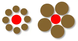 Observa ahora con atención las dos figuras superiores. ¿Sabrías decirnos cuál de los dos círculos rojos centrales es mayor, el de la derecha o el de la izquierda? sabes esperen ire a vomitar ya me marie....