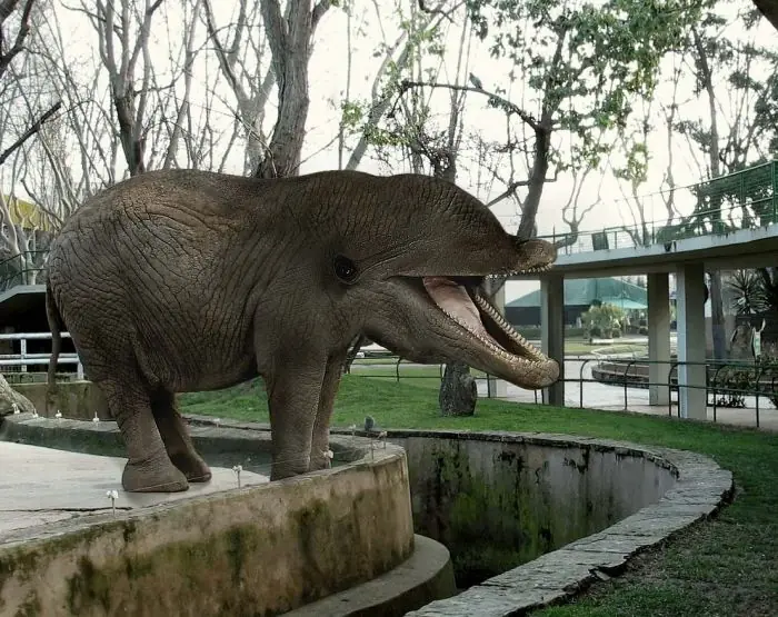 Pelusa se volvio de color morado despuus de tomar medicamento para la piel. Pelusa se encuentra en el zoo de Buenos aires, Argentina.