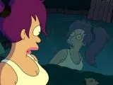 Fry, Bender y Leela deben huir de unos robots que los persiguen. Para eso se esconden en un cine donde pasan una película en 3D, esas que deben verse con anteojos especiales, de dos colores. Todos disfrutan del espectáculo, menos la cíclope Leela, que apoyando alternativamente los cristales rojo y azul sobre su único ojo, se queja: “¡El mío no funciona!” Por supuesto, con un solo ojo ella no puede percibir el efecto tridimensional.